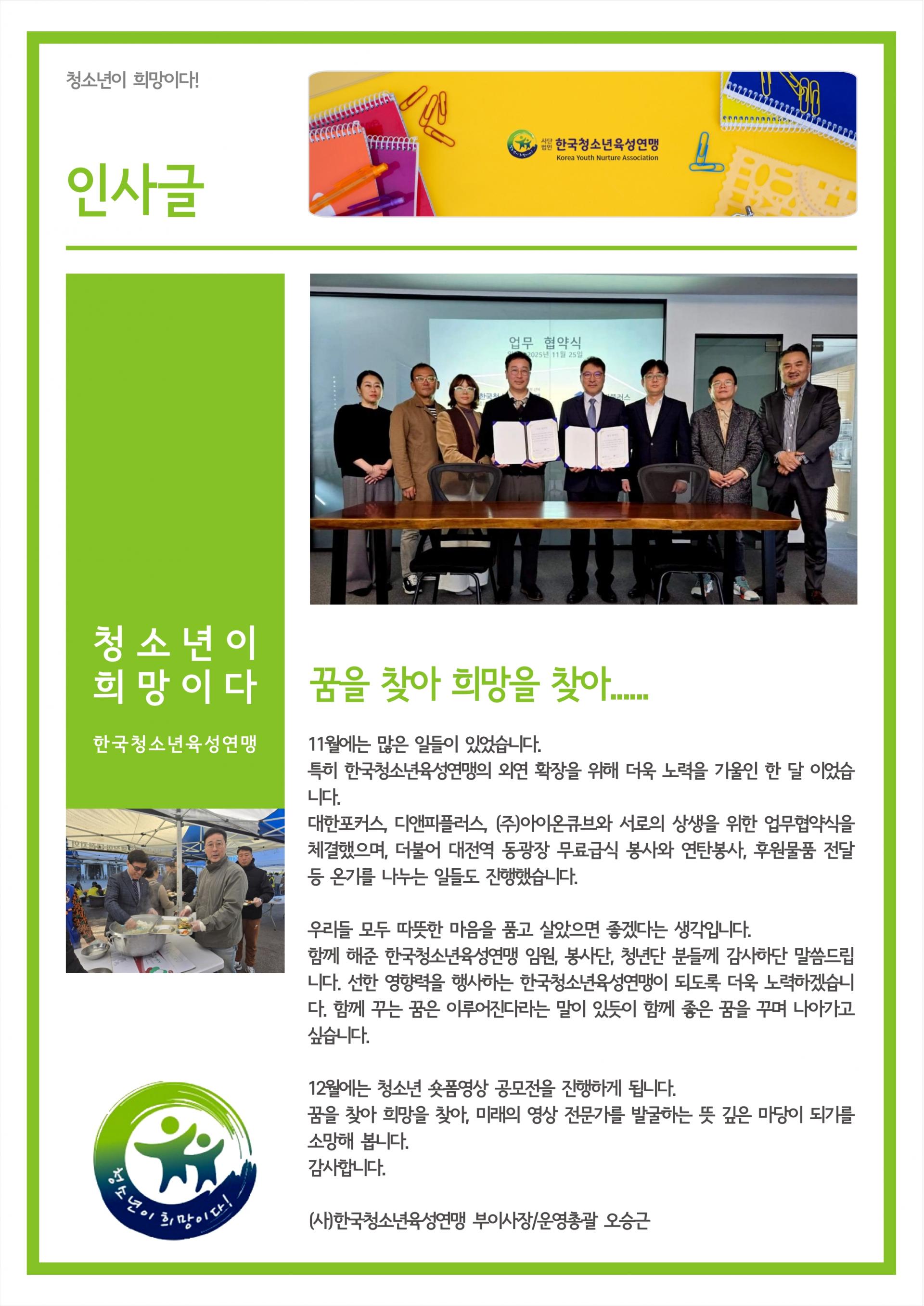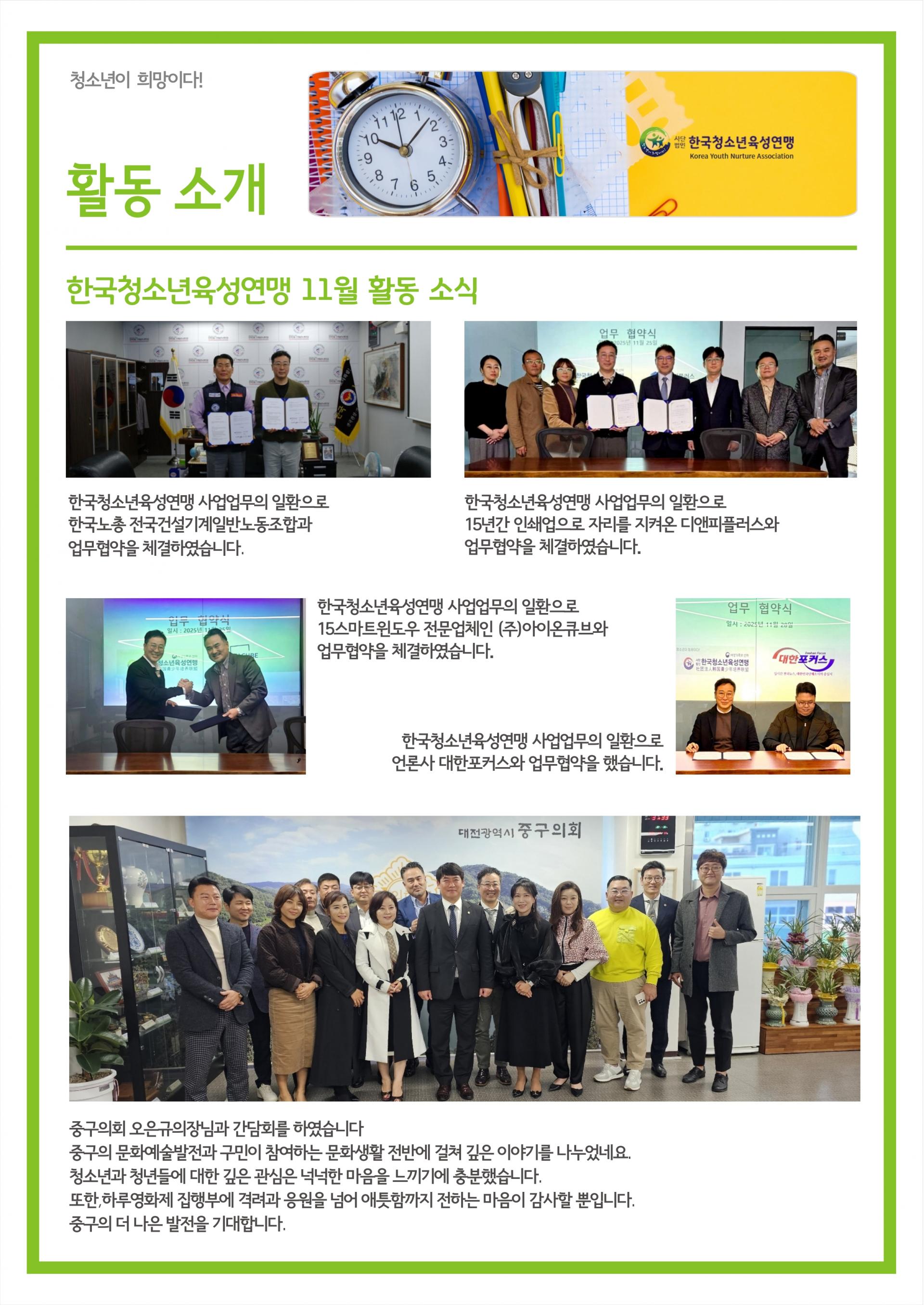 한국청소년육성연맹 2024년 11월 활동 소식